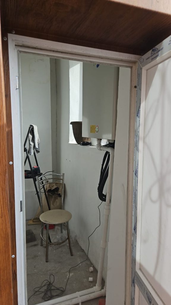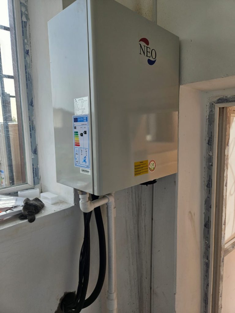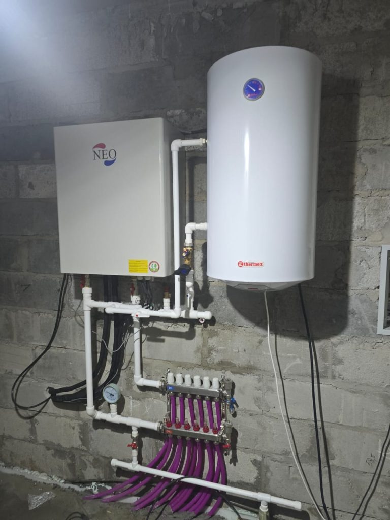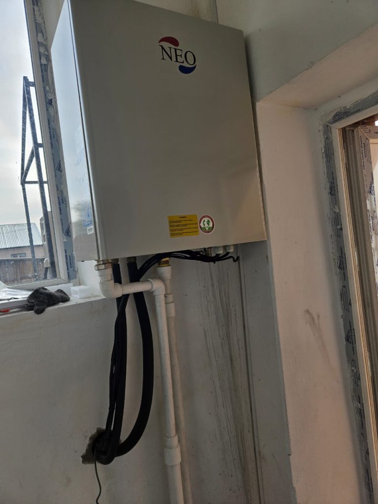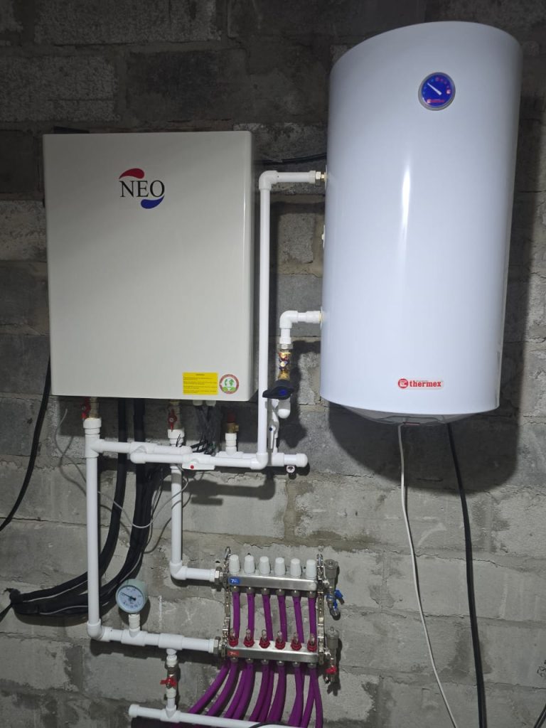 Внутренний блок располагается в котельной или кухне. К нему для более эффективной работы подключается буферная емкость. Использование буферной емкости дает возможность реже включаться компрессору, что экономит его ресурс и электроэнергию и позволяет иметь достаточно горячей воды для оттаивания внешнего теплообменника.