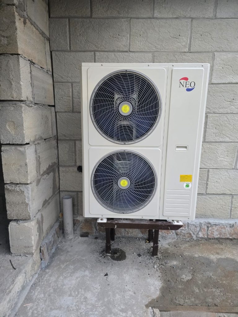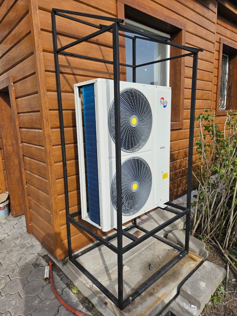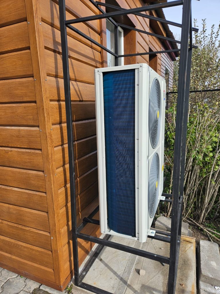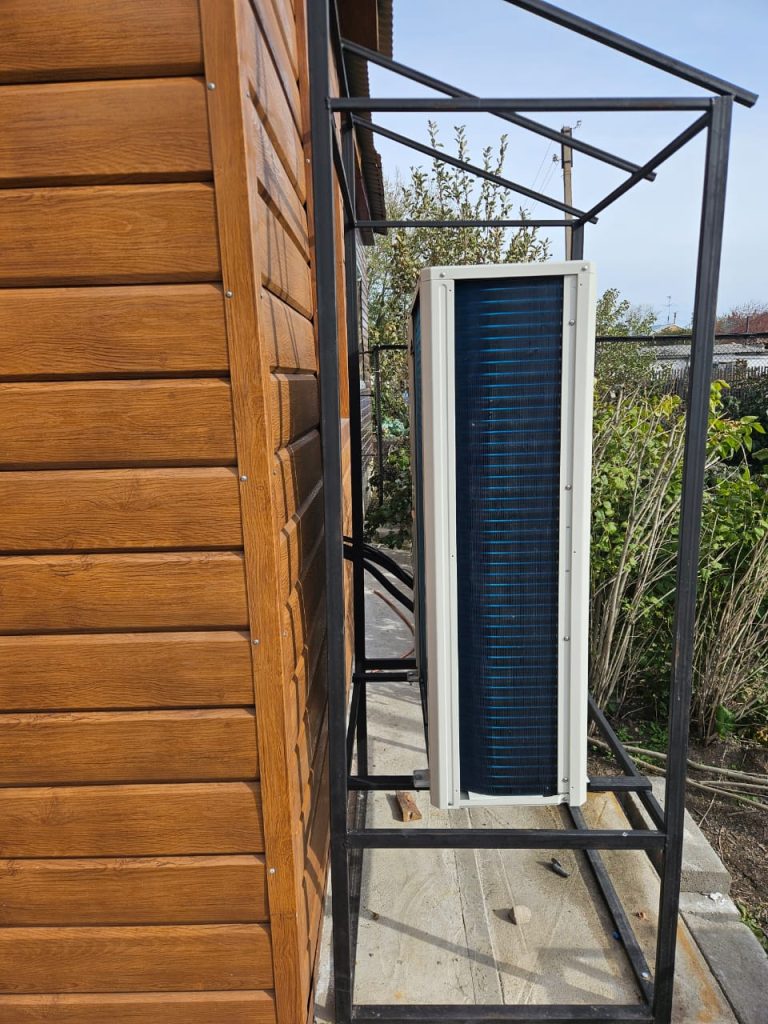 Внешний блок устанавливается снаружи н а бетонное основание или стальную раму, установку лучше делать с теневой стороны дома возле нежилых помещений (кухня, коридор, санузел)